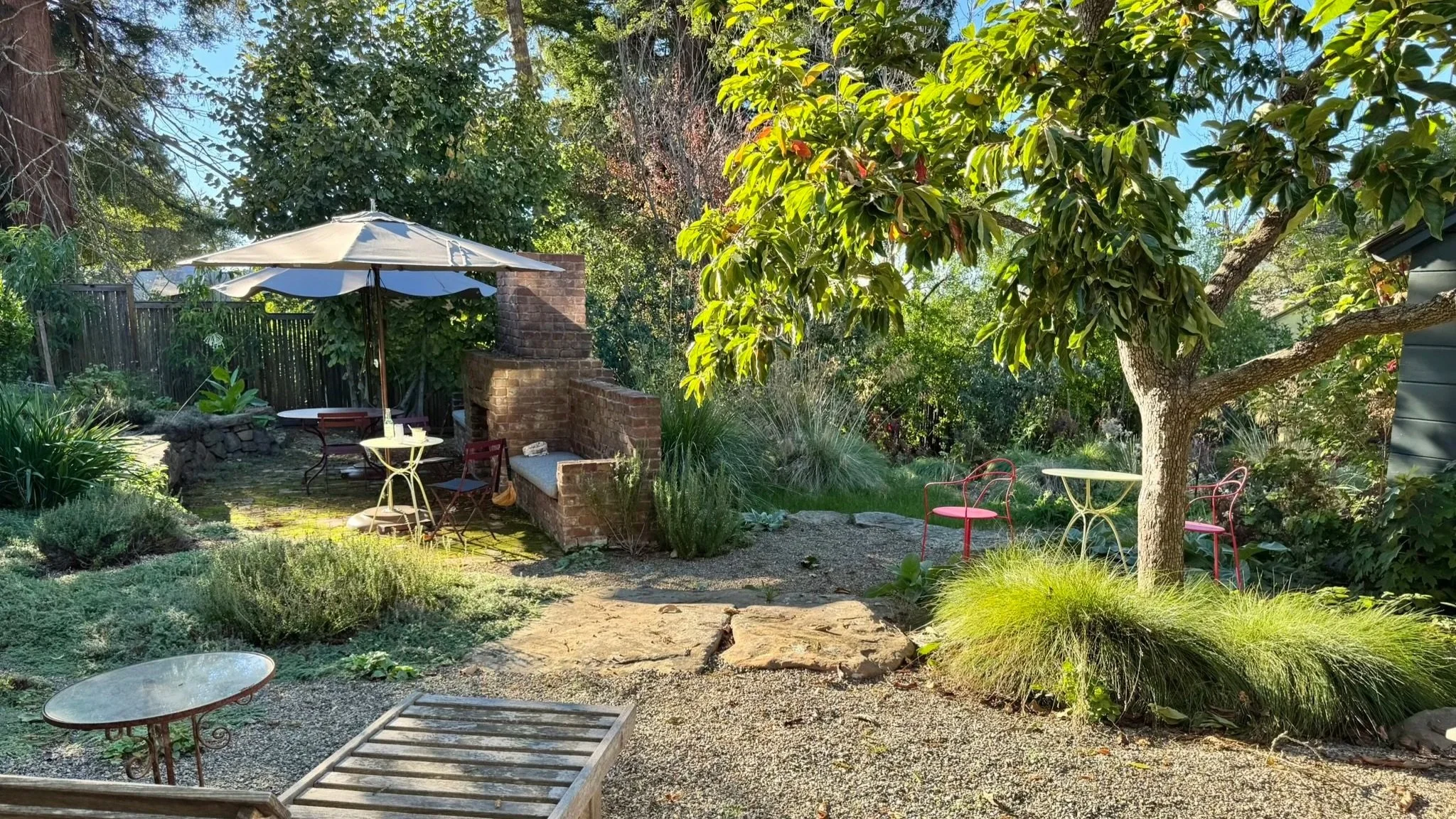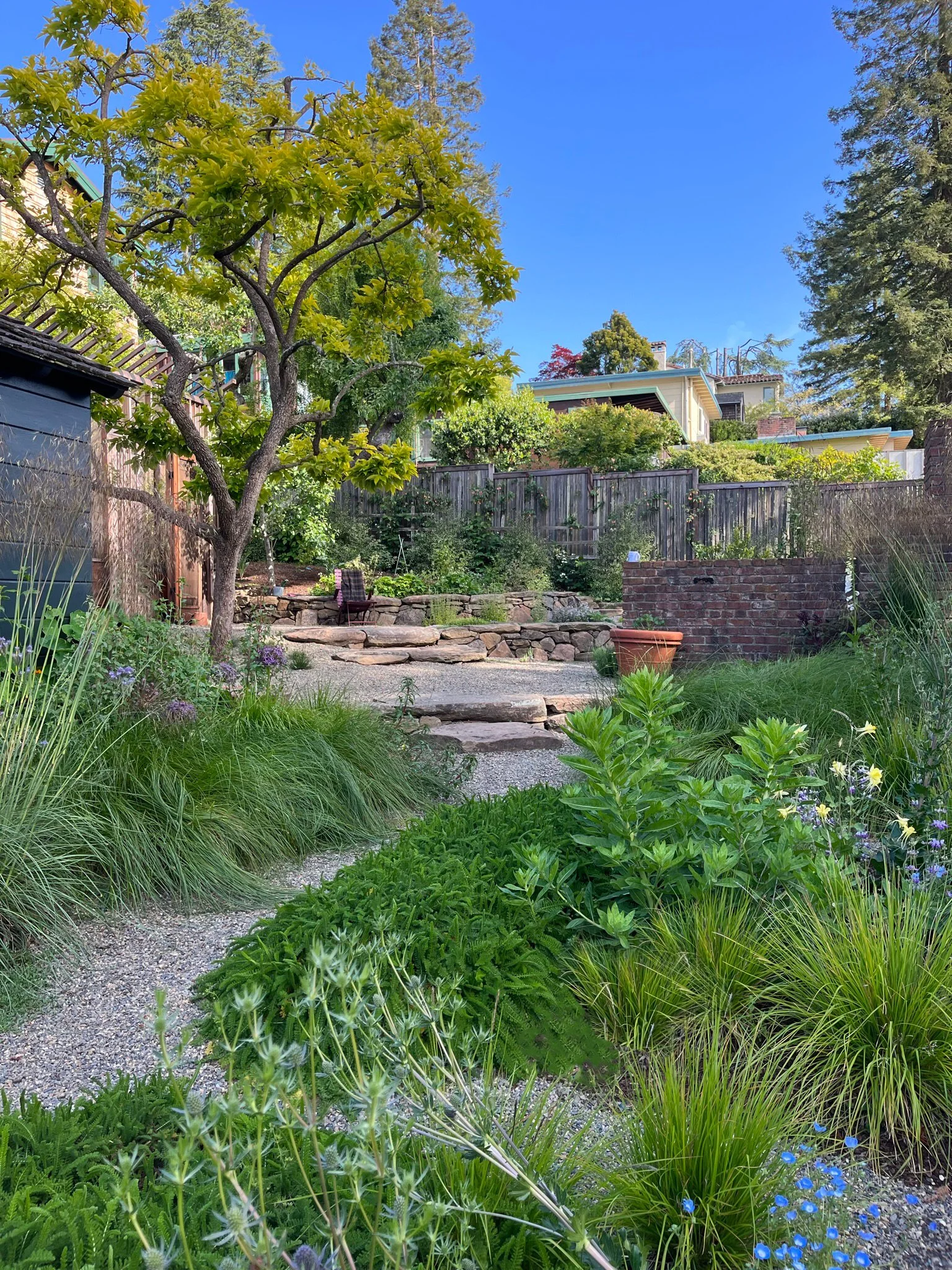 the main craftsman home welcomes you at the street, sitting amidst the ever-blooming cottage garden of dancing light and sounds of trickling water (coming soon) beneath the mature akebono cherry tree and new subtropical blooming wonders. magnolias and michelias are the plant stars throughout—